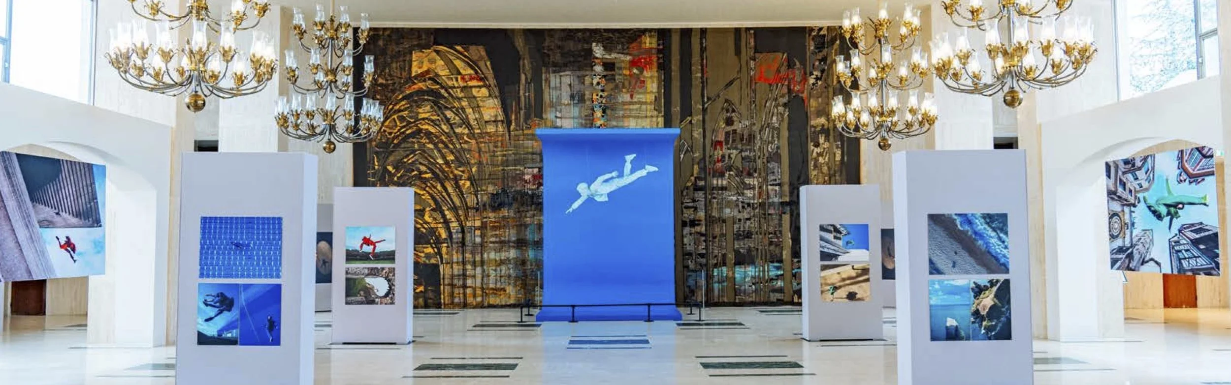 À travers cette exposition, Mathieu Forget sillonne la Seine-Maritime, du littoral d’Étretat aux falaises de Dieppe, des docks du Havre aux ruelles de Rouen, en passant par des sites patrimoniaux majeurs tels que l’abbaye de Jumièges ou le théâtre romain de Lillebonne. Chaque lieu devient une scène vivante où le corps défie la gravité, entre performance dansée, envol photographique et hommage aux sites historiques.